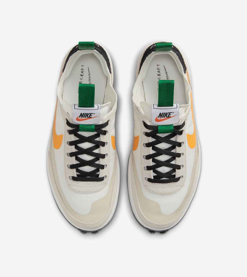 The NikeCraft GPS Bricolage is true to its name. Its elements derive from unexpected use. The sole? It looks like a waffle because it took a waffle iron to invent the running shoe. The Pine Green pullstraps? They’re cut down from high-performance automotive seat belts. The upper? It’s knit—with knots—not woven. It honors the knot-tying methods used by explorers to discover the world.