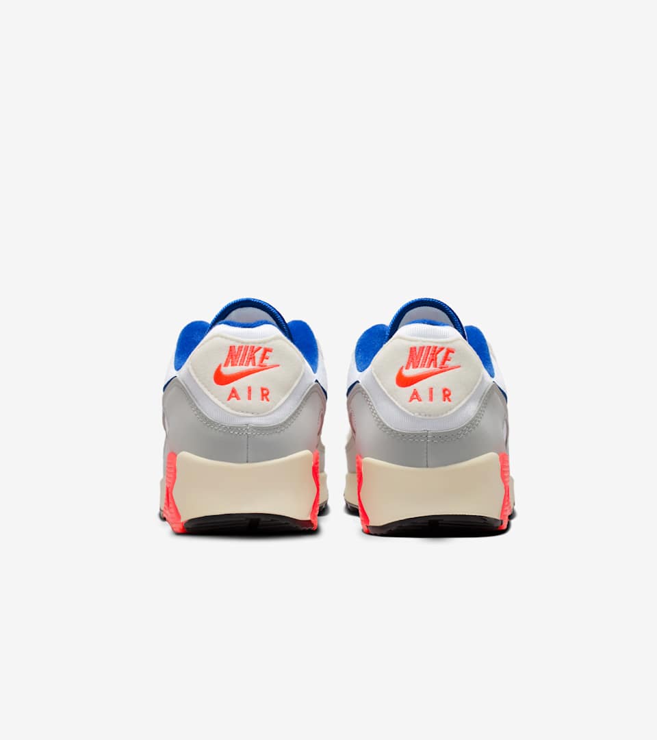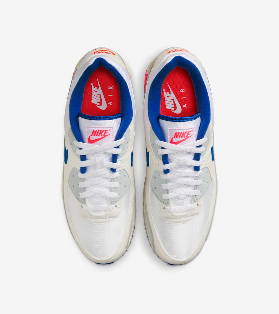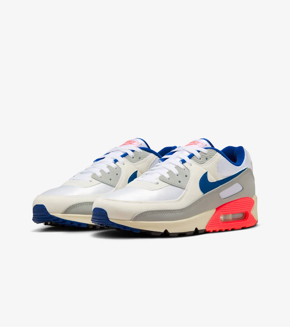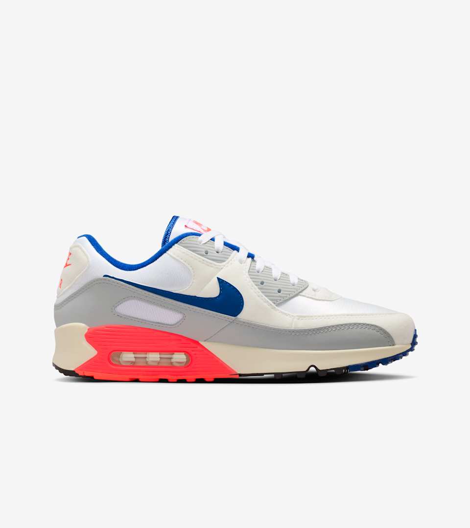 The Air Max 90 stays true to its early running roots with the iconic Waffle sole and visible Max Air cushioning. Sport Royal and blue hits pop against the neutral upper for a clean take on Tinker Hatfield's original 1990 design.